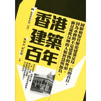 本書以百年建築的發展過程為經,如圍村、殖民地建築、唐樓、洋樓、公營房屋以及私人大型屋苑等;以個別建築類型為緯,如商業建築、教堂建築、公共建築、水上棚屋、交通交匯處等,試圖穿越時空,引領讀者遂一領略香港建築背後的故事和設計者的巧思。